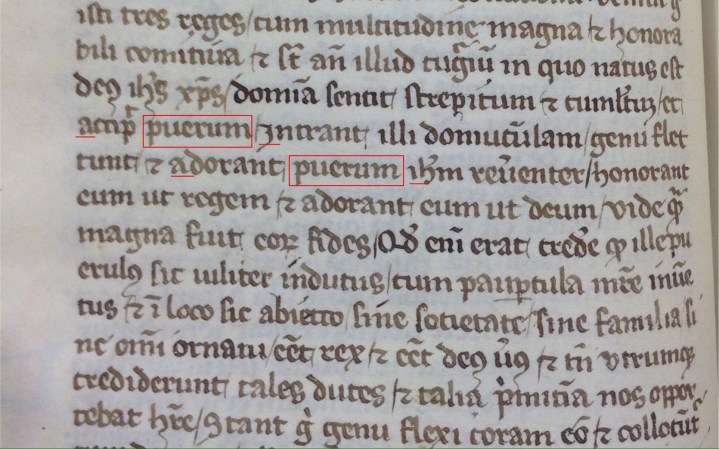 Knowing what we do about haplography, it is easy to see how a scribe could have jumped from the first to the second “puerum” in this section. But this isn’t all.