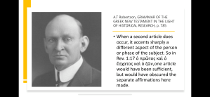A.T. Robertson, famed Greek scholar, confirms that there are exceptions to Sharp’s sixth rule: multiple articular nouns separated by καί do not necessarily refer to different people.